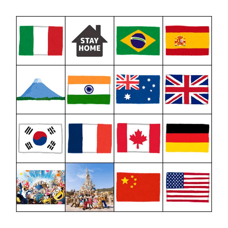 This bingo card has 16 images.