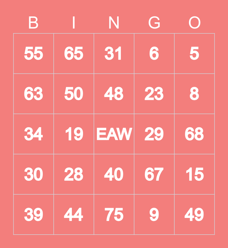 This bingo card has a free space and 75 words: 1, 16, 31, 46, 61, 2, 17, 32, 47, 62, 3, 18, 48, 63, 4, 19, 33, 49, 64, 5, 20, 34, 50, 65, 6, 21, 35, 51, 66, 7, 22, 36, 52, 67, 8, 23, 37, 53, 68, 9, 24, 38, 54, 69, 10, 25, 39, 55, 70, 11, 26, 40, 56, 71, 12, 27, 41, 57, 72, 13, 28, 42, 58, 73, 14, 29, 43, 59, 74, 15, 30, 44, 60, 75 and 45.