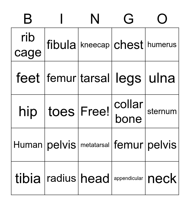 Human Skeleton Bingo | Bones Bingo | BONES | Radiology Language | Skeletal System Bingo