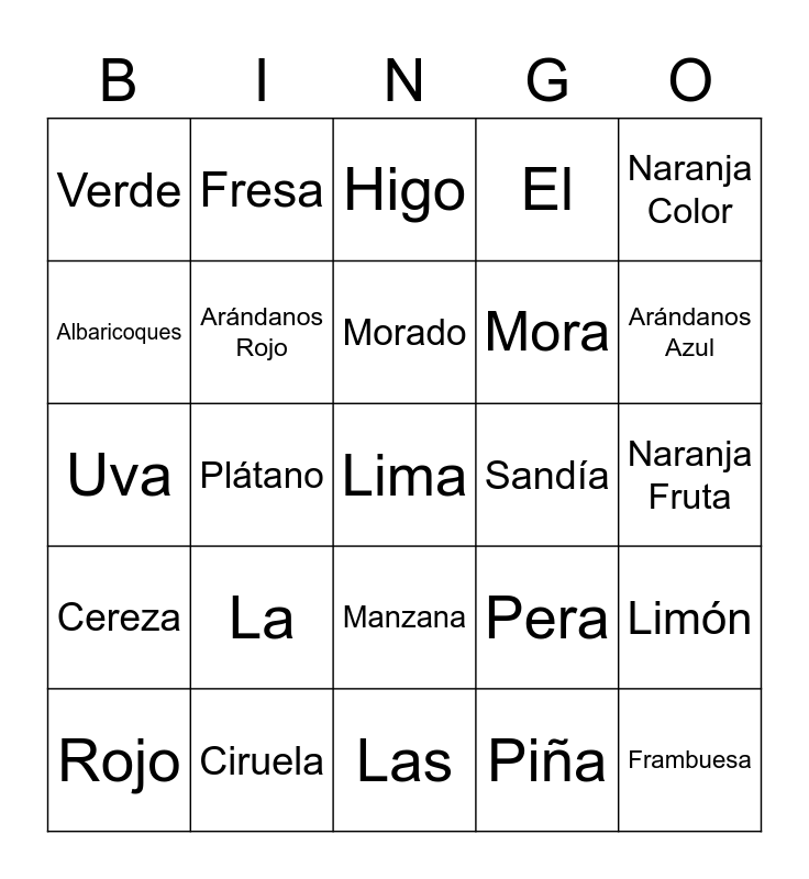 Las Frutas y Los Colores Bingo Card