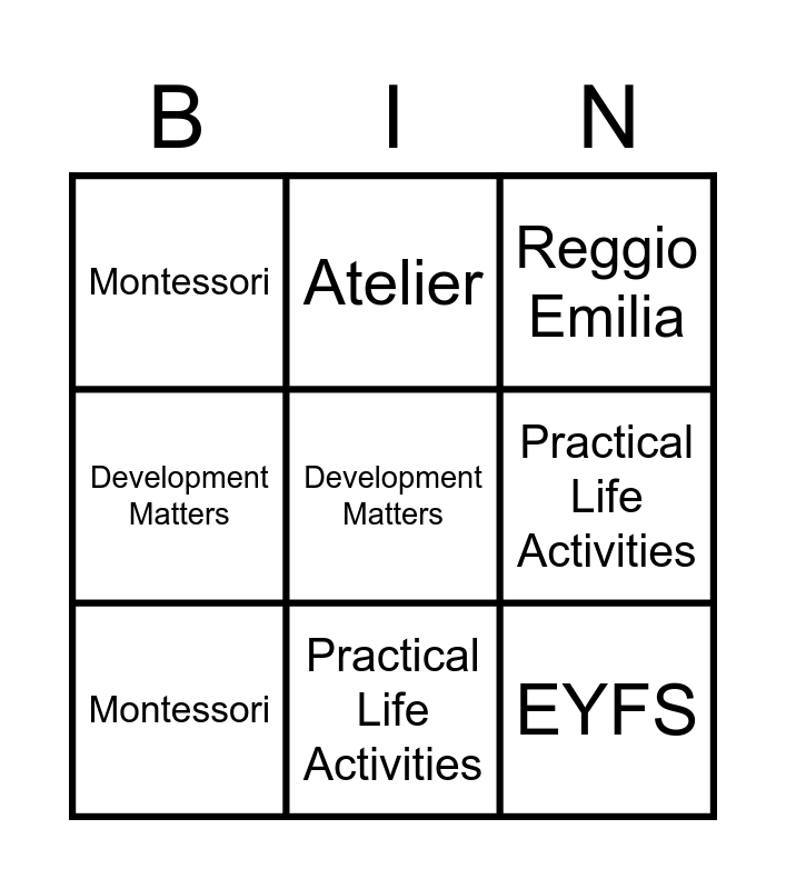 ⚠ This card has duplicate items: Reggio Emilia (5), Montessori (5), EYFS (5), MoE (5), Free! (2), High Scope (5), Atelier (2), Open-ended Resources (3), Practical Life Activities (3), Bonus (2), Baraem AlMustaqbal (2), Development Matters (2), Montessori Learning Materials (2), SABIS (2), The Philippine Curriculum (2), The Australian Curriculum (2)