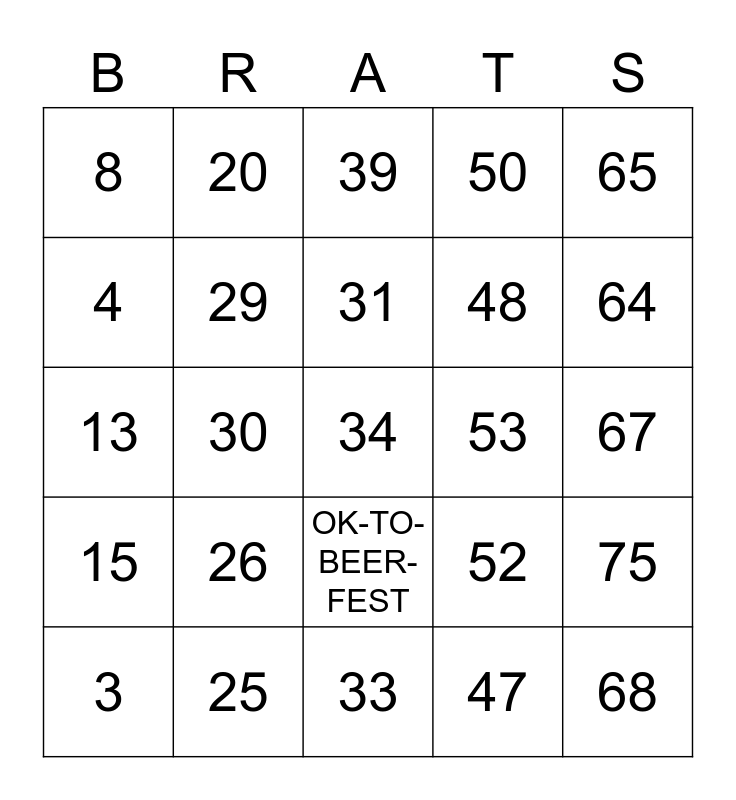 This bingo card has 76 words: 1, 16, 31, 46, 61, 2, 17, 32, 47, 62, 3, 18, OK-TO-BEER-FEST, 48, 63, 4, 19, 33, 49, 64, 5, 20, 34, 50, 65, 6, 21, 35, 51, 66, 7, 22, 36, 52, 67, 8, 23, 37, 53, 68, 9, 24, 38, 54, 69, 10, 25, 39, 55, 70, 11, 26, 40, 56, 71, 12, 27, 41, 57, 72, 13, 28, 42, 58, 73, 14, 29, 43, 59, 74, 15, 30, 44, 60, 75 and 45.