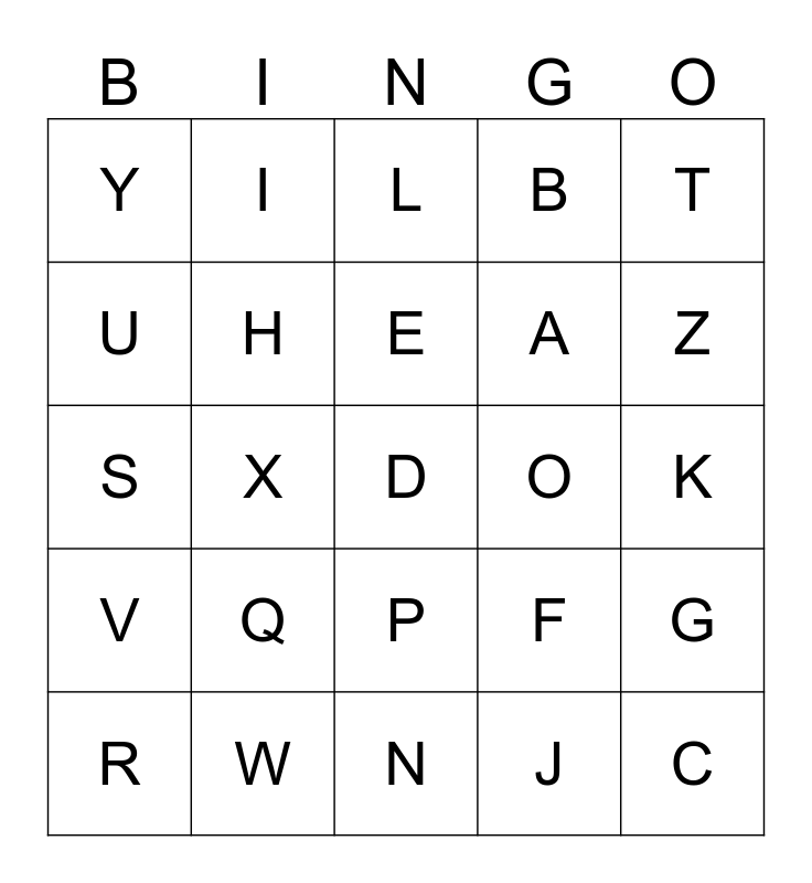 This bingo card has a free space and 24 words: Q, W, E, R, T, Y, U, I, O, P, A, S, F, G, H, J, K, L, Z, X, C, V, B and N.
