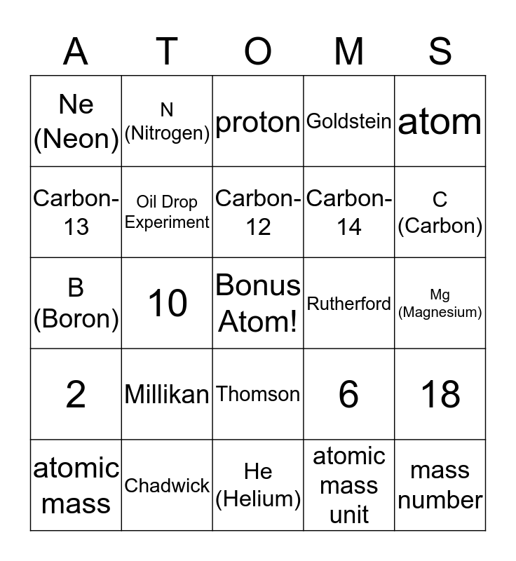 Chapter 4 - Atomic Structure | Science | Chemistry | Science | Atomic Bingo