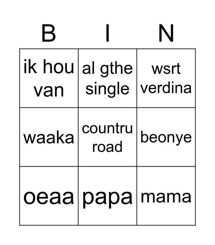 This bingo card has a free space and 8 words: waaka, al gthe single, beonye, oeaa, wsrt verdina, ik hou van, papa and mama.