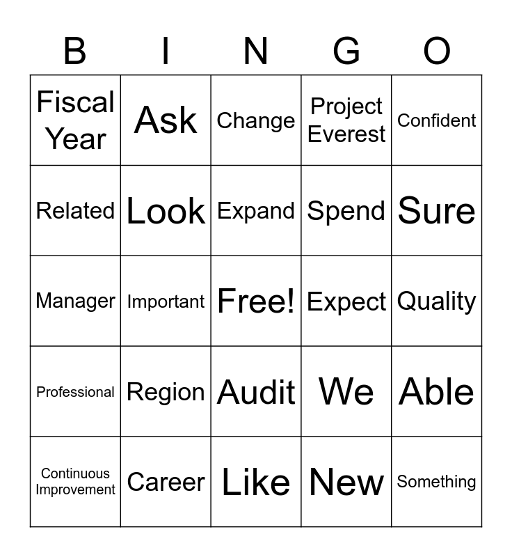This bingo card has a free space and 112 words: Data, Understand, Challenge, Clients, Future, Analyze, Project Everest, Busy Season, Transformative, Collaborate, Leader, Assurance, Office, Flexible, Work, Time, Audit, Tax, Consulting, Technology, Continuous Improvement, Change, Baltimore, EY Ripples, Volunteer, Professional, Career, Welcome, Travel, Together, Fiscal Year, Important, Culture, Fun, Growth, Opportunity, Service, Public, Brand, Ahead, Thank you, Engage, Business, Goal, Expect, Pen, Smile, Like, Ethics, We, You, New, Available, Key, Keep, People, Ask, Why, Great, Able, Spend, Deeper, Communicate, Comfortable, Partner, Staff, Senior, Manager, Level, Recognize, Period, Sure, Many, Valuable, Project, Region, Rpresent, World, Firm, Focus, Something, Excited, Expand, Look, Develop, Super, Certainly, Questions, How, Effect, Different, Confident, Know, Minds, Overall, Quality, Resources, Deliver, Impove, Quickly, Input, Through, Add, Offer, Agile, Recruiting, Related, Retention, Crucial, Strategy, Open and Thoughts.