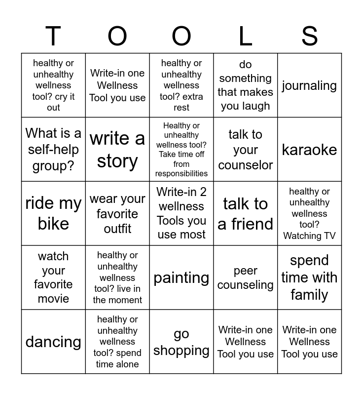 ⚠ This card has duplicate items: Write-in one Wellness Tool you use (4)