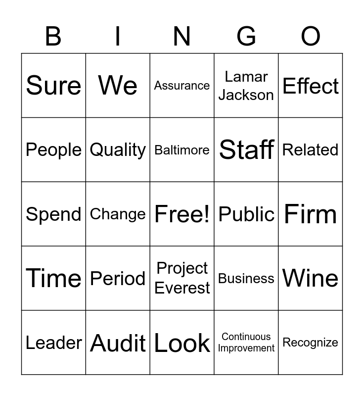 This bingo card has a free space and 121 words: Pumpkin Spice, Cinnamon, Super-hero, Halloween, Minions, Everest, Lamar Jackson, Baby, Wine, Volleyball, Data, Understand, Challenge, Clients, Future, Analyze, Project Everest, Busy Season, Transformative, Collaborate, Leader, Assurance, Office, Flexible, Work, Time, Audit, Tax, Consulting, Technology, Continuous Improvement, Change, Baltimore, EY Ripples, Volunteer, Professional, Career, Welcome, Travel, Together, Fiscal Year, Important, Culture, Fun, Growth, Opportunity, Service, Public, Brand, Ahead, Thank you, Engage, Business, Goal, Expect, Pen, Smile, Like, Ethics, We, You, New, Available, Key, Keep, People, Ask, Why, Great, Able, Spend, Deeper, Communicate, Comfortable, Partner, Staff, Senior, Manager, Level, Recognize, Period, Sure, Many, Valuable, Project, Region, Represent, World, Firm, Focus, Something, Expand, Look, Develop, Super, Certainly, Questions, How, Effect, Different, Confident, Know, Minds, Overall, Quality, Resources, Deliver, Improve, Quickly, Input, Through, Add, Offer, Agile, Recruiting, Related, Retention, Crucial, Strategy, Open and Thoughts.