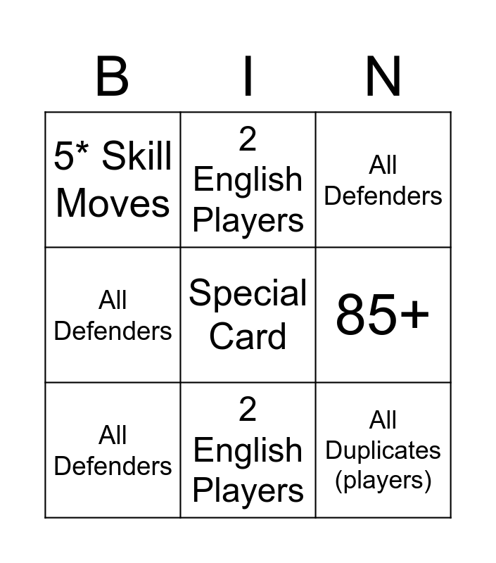 ⚠ This card has duplicate items: All Defenders (3), 2 English Players (2), No Rare Players (2), Special Card (2)