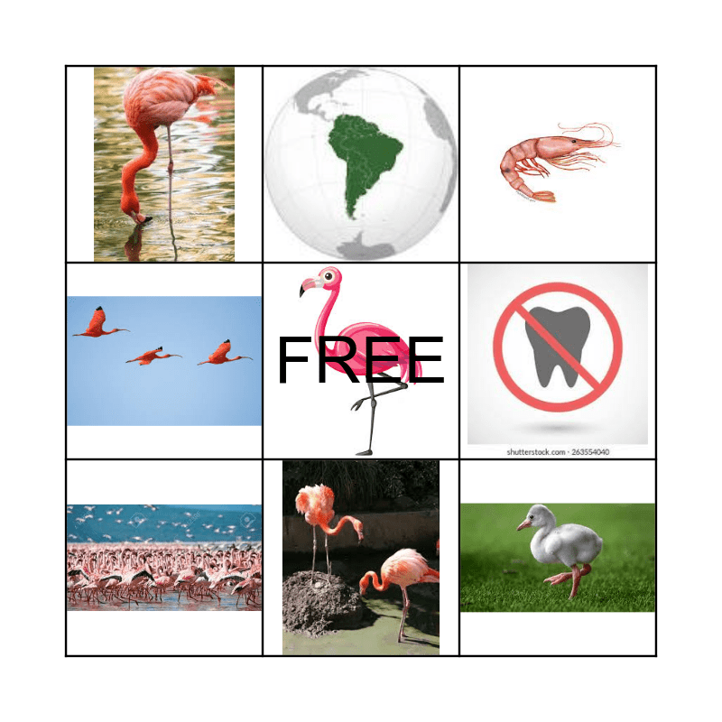 This bingo card has 8 images and a free space.