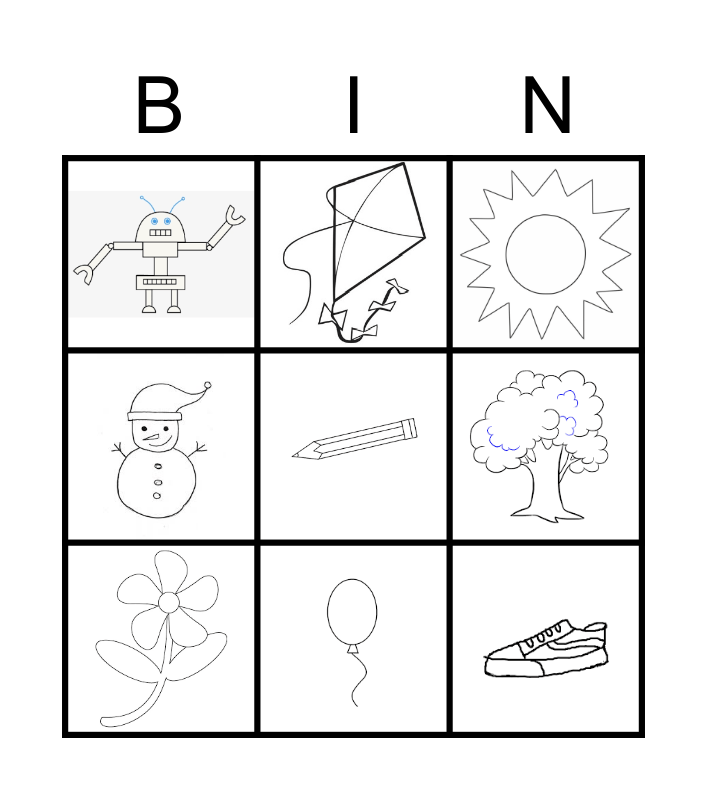 This bingo card has 9 images.