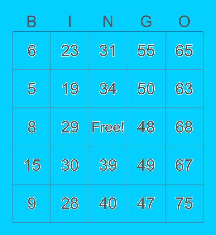 This bingo card has a free space and 75 words: 1, 16, 31, 46, 61, 2, 17, 32, 47, 62, 3, 18, 48, 63, 4, 19, 33, 49, 64, 5, 20, 34, 50, 65, 6, 21, 35, 51, 66, 7, 22, 36, 52, 67, 8, 23, 37, 53, 68, 9, 24, 38, 54, 69, 10, 25, 39, 55, 70, 11, 26, 40, 56, 71, 12, 27, 41, 57, 72, 13, 28, 42, 58, 73, 14, 29, 43, 59, 74, 15, 30, 44, 60, 75 and 45.