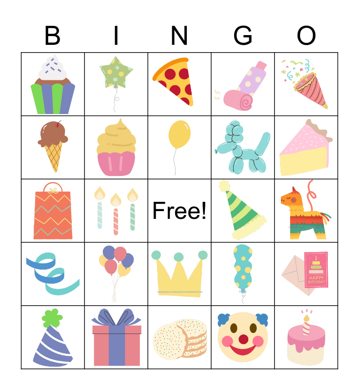 This bingo card has 24 images and a free space.