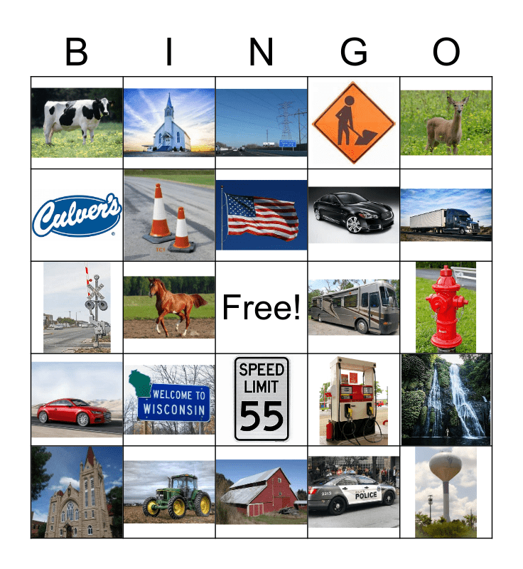 This bingo card has 24 images and a free space.