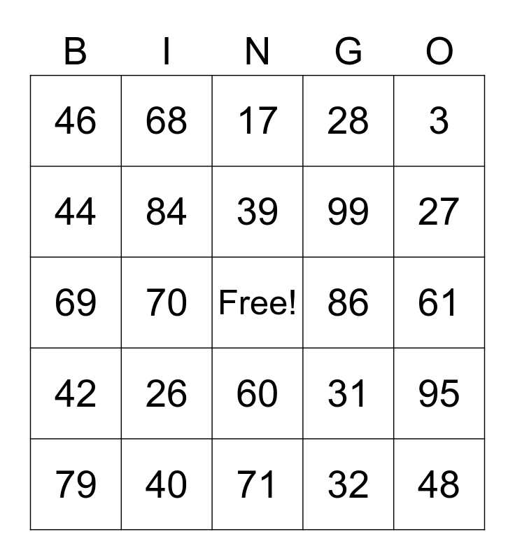 This bingo card has a free space and 105 words: 1, 2, 3, 4, 5, 6, 7, 8, 9, 10, 11, 12, 13, 14, 15, 16, 17, 18, 19, 20, 21, 22, 23, 24, 25, 26, 27, 28, 29, 30, 31, 32, 33, 34, 35, 36, 37, 38, 39, 40, 41, 42, 43, 44, 45, 46, 47, 48, 49, 50, 51, 52, 53, 54, 55, 56, 57, 58, 59, 60, 61, 62, 63, 64, 65, 66, 67, 68, 69, 70, 71, 72, 73, 74, 75, 76, 77, 78, 79, 80, 81, 82, 83, 84, 85, 86, 87, 88, 89, 90, 91, 92, 93, 94, 95, 96, 97, 98, 99, 100, 101, 102, 103, 104 and 105.