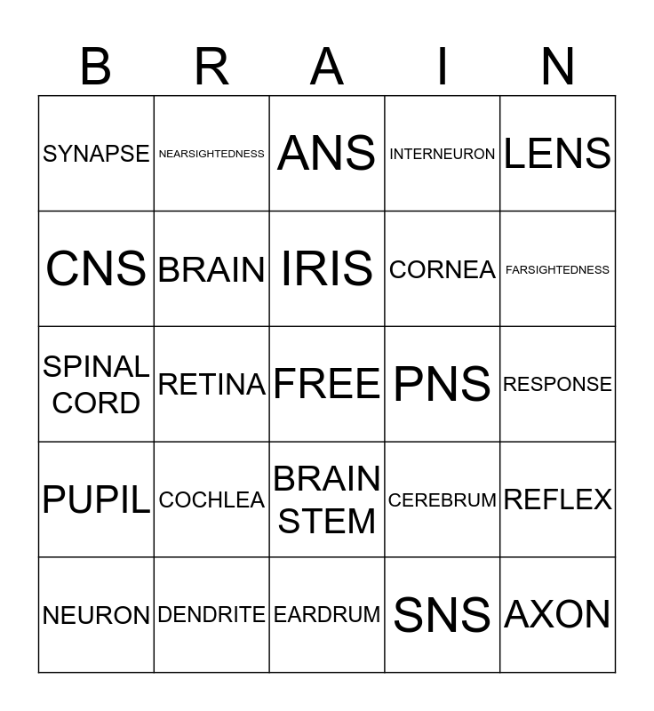 NERVOUS SYSTEM | BRAIN BINGO | Brain Bingo | Brain Bingo | Brain Bingo