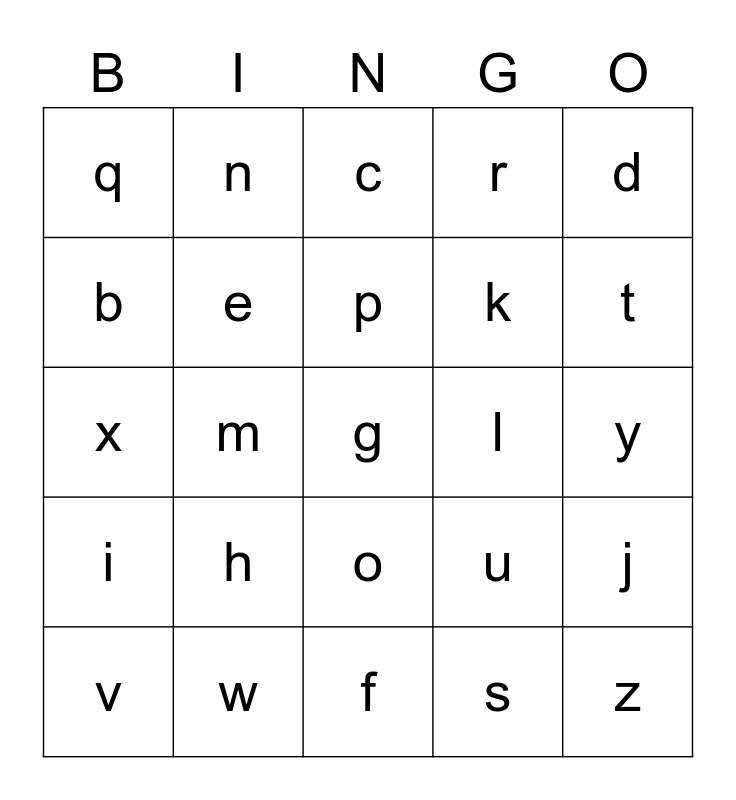 This bingo card has a free space and 24 words: h, w, p, v, d, q, b, n, l, o, k, x, u, j, e, s, y, c, t, m, z, i, r and f.