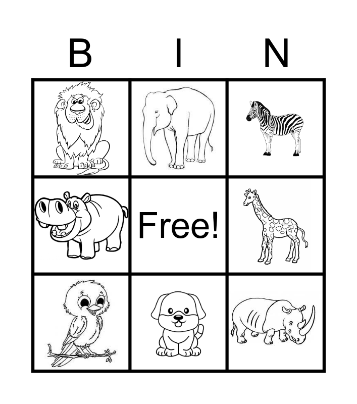 This bingo card has 8 images and a free space.