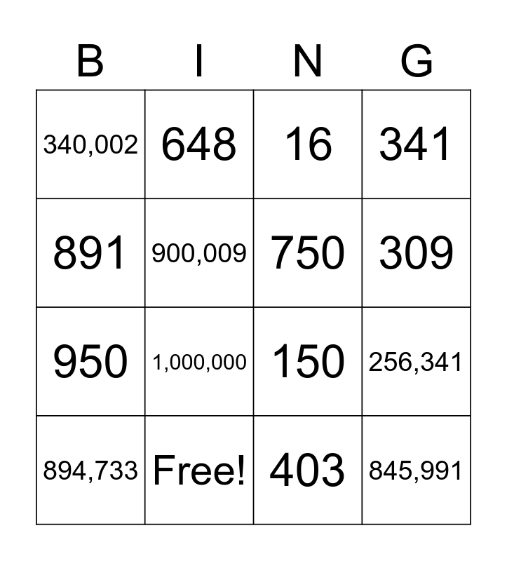 This bingo card has 25 words: 500,221, 922, 309, 60,000, 891, 340,002, 900,009, 648, Free!, 614, 950, 150, 956,483, 208, 750, 614,208, 403, 16, 1,000,000, 256,341, 894,733, 300,012, 845,991, 341 and 212.