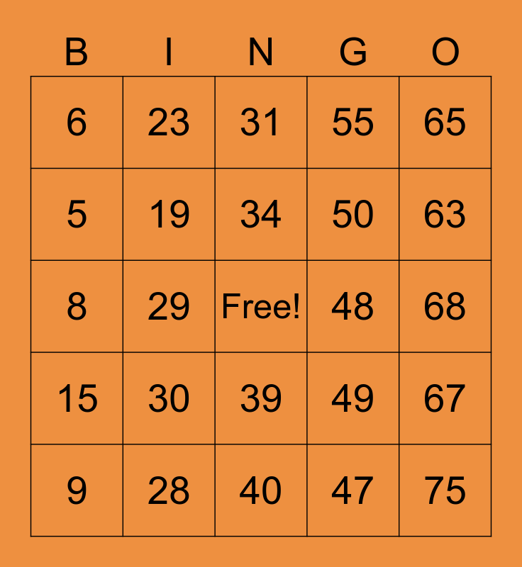 This bingo card has a free space and 75 words: 1, 16, 31, 46, 61, 2, 17, 32, 47, 62, 3, 18, 48, 63, 4, 19, 33, 49, 64, 5, 20, 34, 50, 65, 6, 21, 35, 51, 66, 7, 22, 36, 52, 67, 8, 23, 37, 53, 68, 9, 24, 38, 54, 69, 10, 25, 39, 55, 70, 11, 26, 40, 56, 71, 12, 27, 41, 57, 72, 13, 28, 42, 58, 73, 14, 29, 43, 59, 74, 15, 30, 44, 60, 75 and 45.