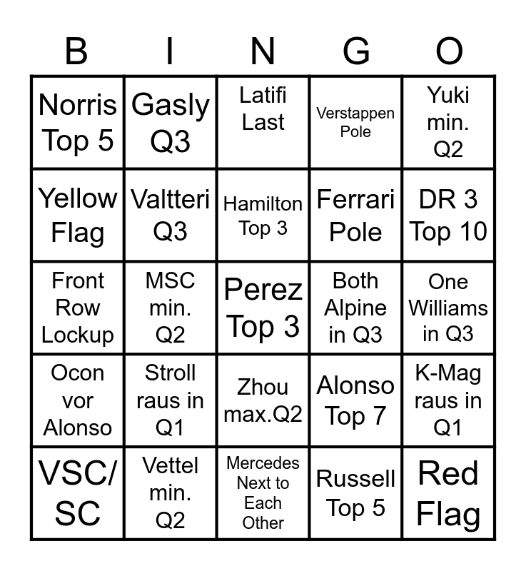 Ultimate Formula 1 Bingo | Qualif Abu Dhabi | quali | Qualif Arabie Saoudite | Ungarn GP