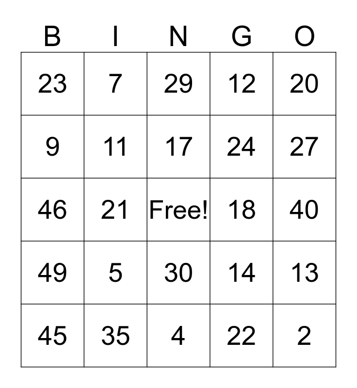 This bingo card has a free space and 50 words: 1, 2, 3, 4, 5, 6, 7, 8, 9, 10, 11, 12, 13, 14, 15, 16, 17, 18, 19, 20, 21, 22, 23, 24, 25, 26, 27, 28, 29, 30, 31, 32, 33, 34, 35, 36, 37, 38, 39, 40, 41, 42, 43, 44, 45, 46, 47, 48, 49 and 50.