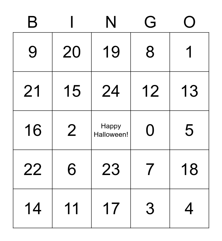 This bingo card has a free space and 24 words: 6, 11, 24, 14, 1, 9, 21, 20, 0, 23, 12, 16, 7, 18, 15, 3, 5, 19, 13, 2, 4, 22, 8 and 17.