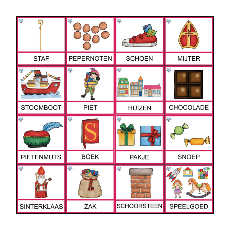 This bingo card has 16 images.