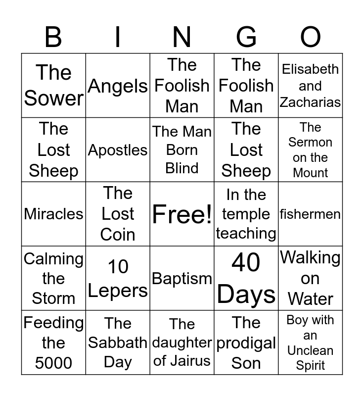 ⚠ This card has duplicate items: The Lost Sheep (2), The Foolish Man (2)