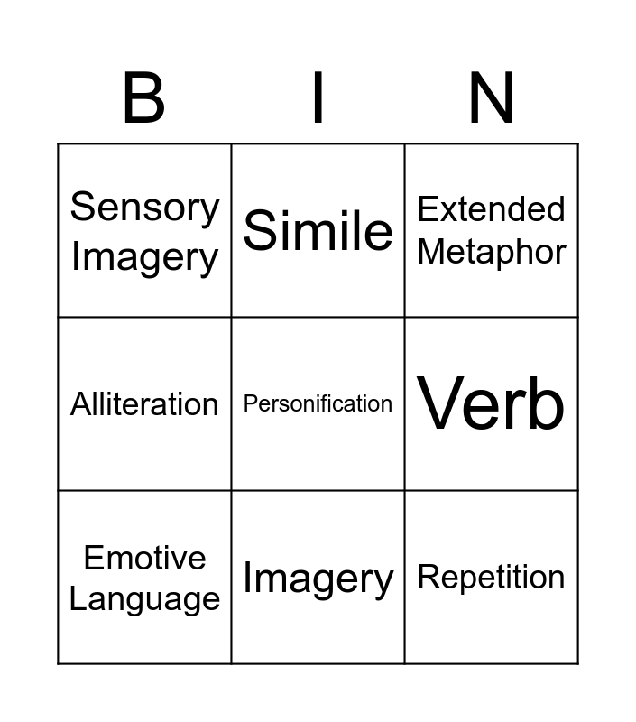 Fingurative Language | LITERARY TECHNIQUE | Literary Devices | Poetry Bingo | Formalism Bingo