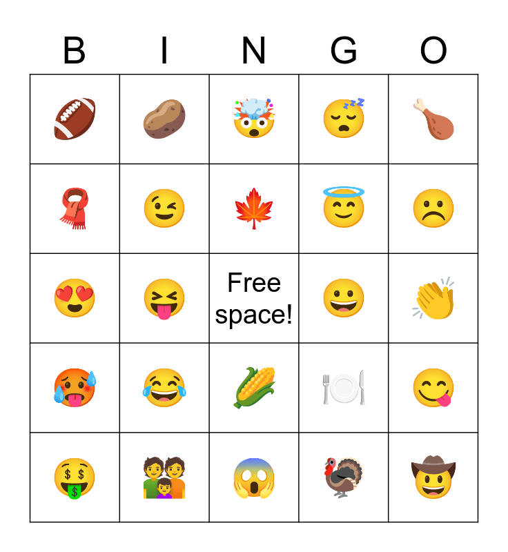 This bingo card has a free space and 26 words: đŊ, đĻ, đ, đĒ, đ, đ, đ§Ŗ, đĨ, đ, đŊī¸, đ, đ, đ, đ¤, đ, đļ, đ´, đĨĩ, đ¤¯, đ¤ , âšī¸, đą, đ, đ, đ and đ¤.