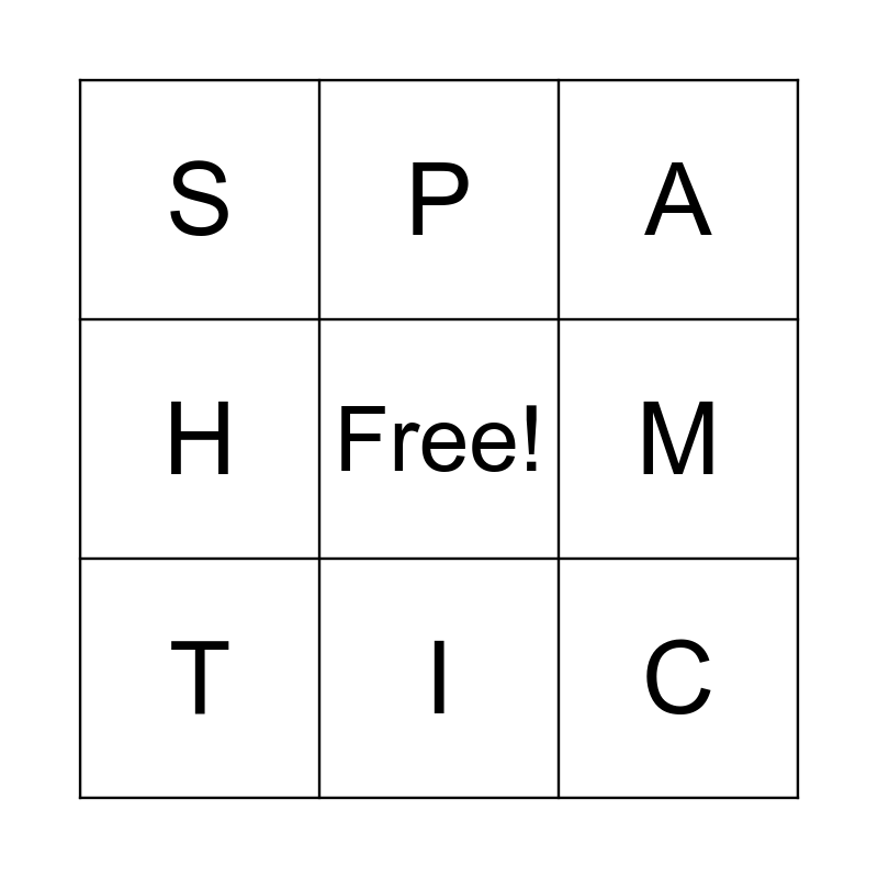 This bingo card has a free space and 8 words: M, A, P, T, S, C, H and I.