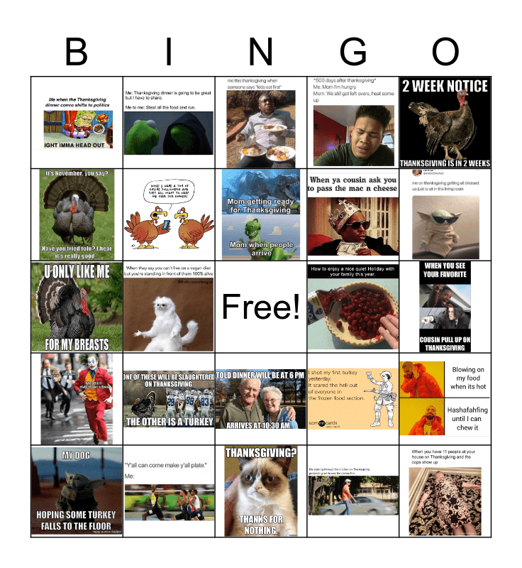 PRE THANKSGIVING Bingo Card