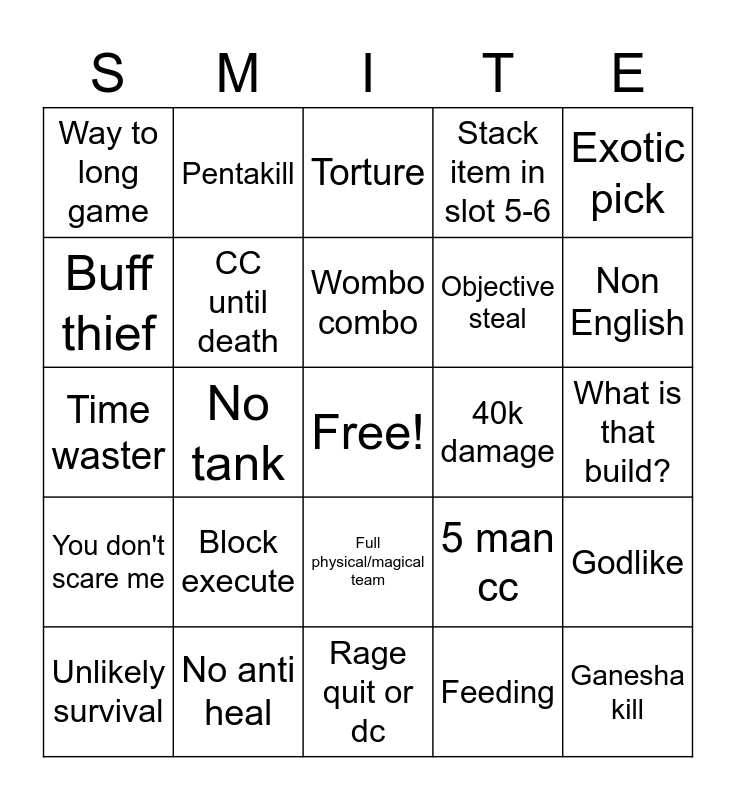 Smite Deux Bingo | Smite | CS GO Bingo | Phara BINGO | Aram