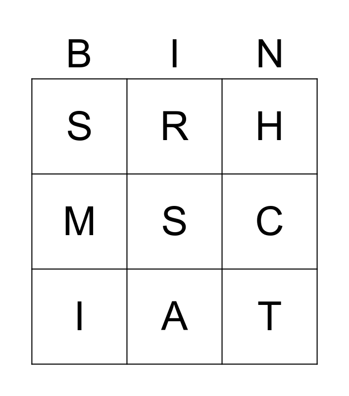 This bingo card has a free space and 8 words: C, H, R, I, S, T, M and A.