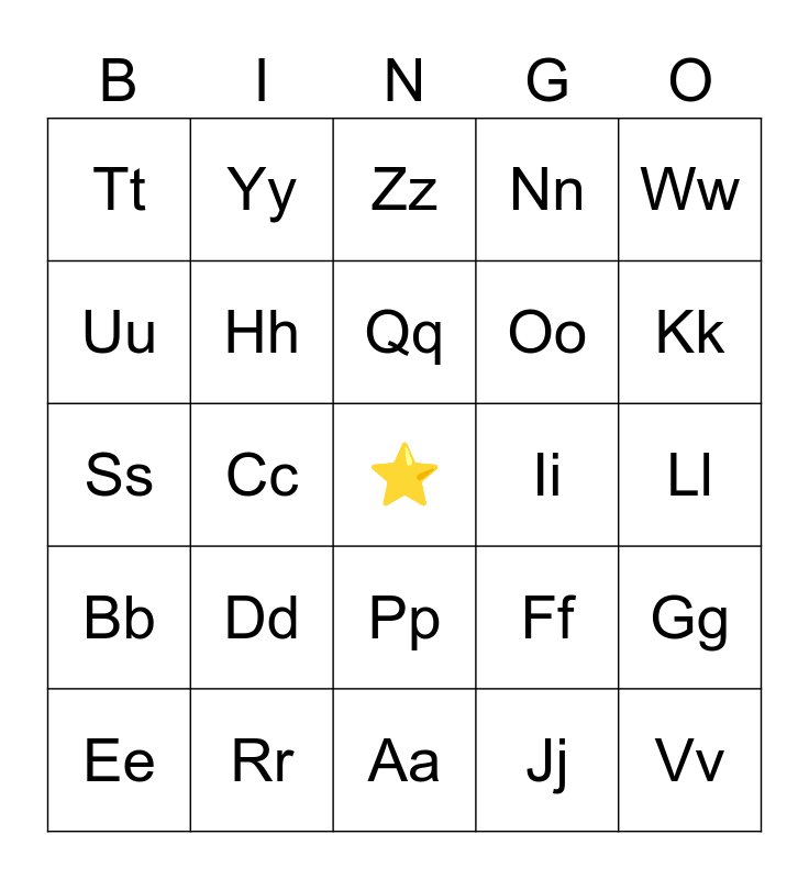 This bingo card has a free space and 24 words: Dd, Rr, Qq, Ee, Ww, Tt, Uu, Yy, Ii, Pp, Oo, Ss, Ff, Gg, Hh, Jj, Ll, Zz, Kk, Cc, Vv, Bb, Nn and Aa.