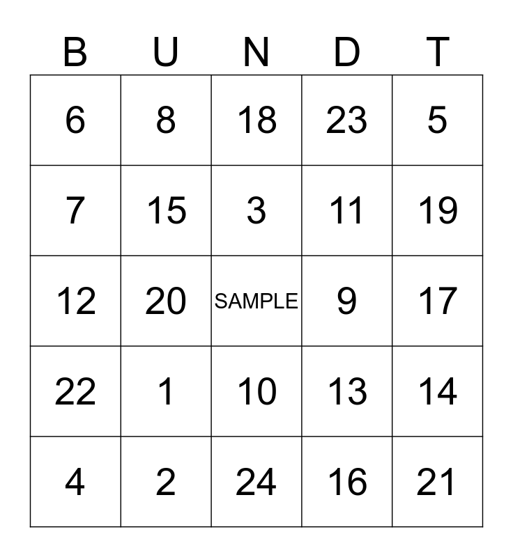 This bingo card has a free space and 24 words: 1, 2, 3, 4, 5, 6, 7, 8, 9, 10, 11, 12, 13, 14, 15, 16, 17, 18, 19, 20, 21, 22, 23 and 24.