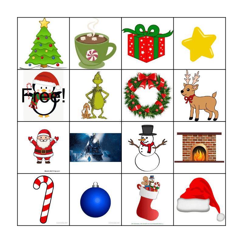This bingo card has 16 images and 1 words: Free!.
