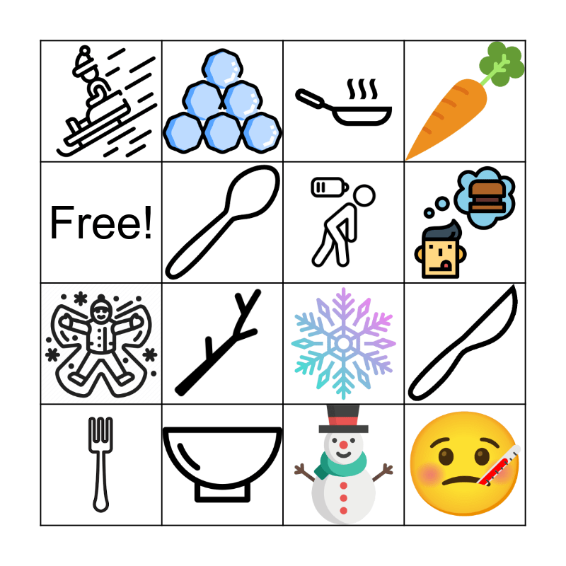 This bingo card has 15 images and 1 words: Free!.