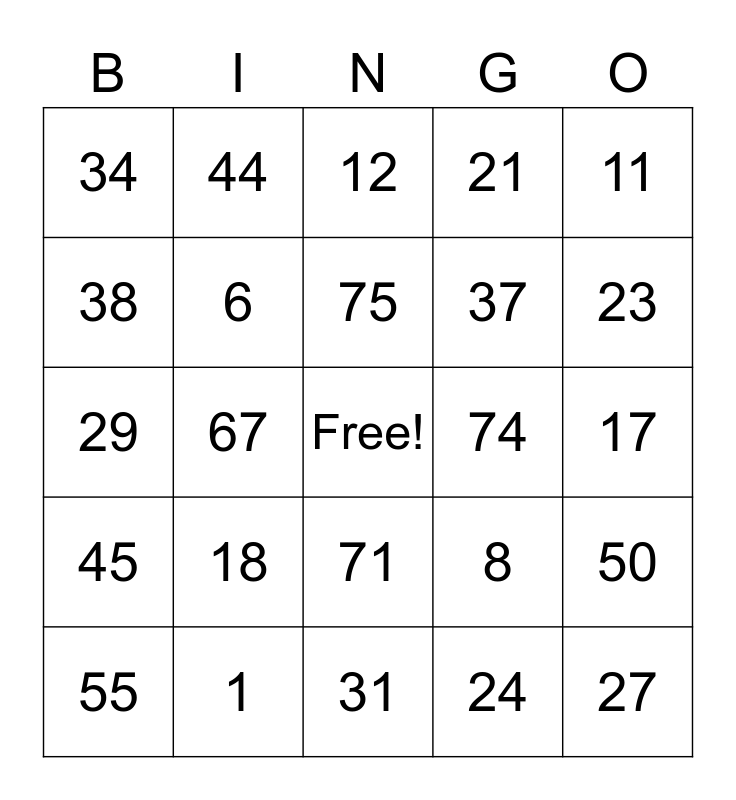 This bingo card has a free space and 75 words: 39, 68, 12, 43, 9, 41, 35, 10, 14, 58, 30, 60, 75, 38, 72, 67, 7, 27, 54, 11, 70, 29, 6, 44, 21, 3, 51, 66, 49, 22, 36, 52, 64, 8, 23, 37, 53, 2, 17, 24, 4, 5, 69, 47, 25, 61, 55, 34, 26, 40, 56, 71, 32, 20, 62, 57, 65, 13, 28, 42, 18, 73, 63, 19, 59, 74, 15, 33, 48, 50, 45, 1, 16, 31 and 46.