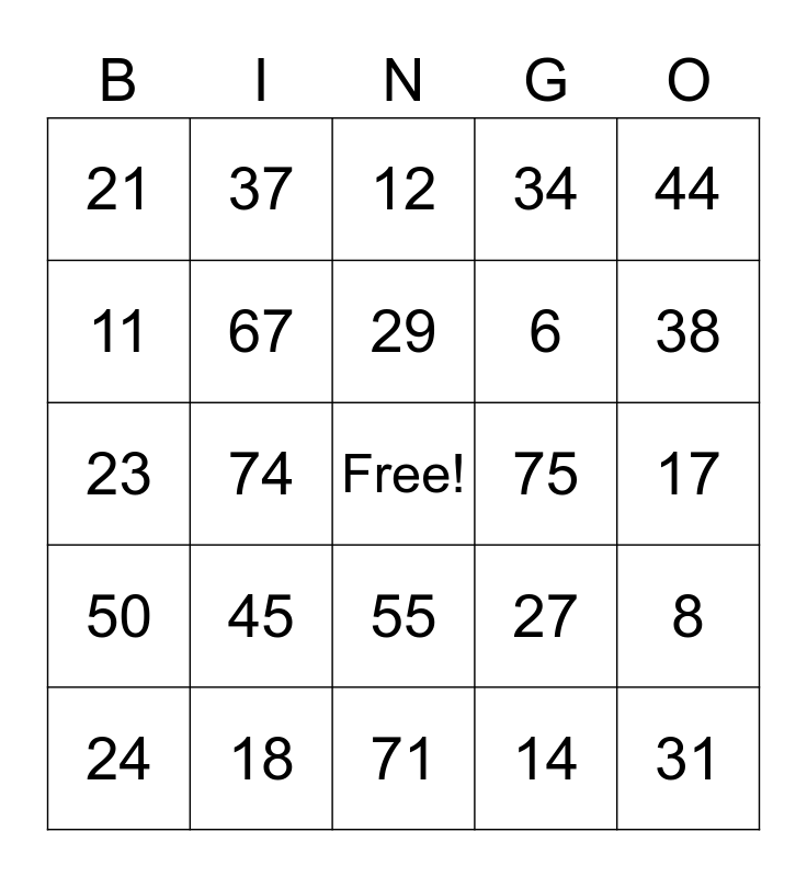 This bingo card has a free space and 75 words: 39, 68, 12, 43, 9, 41, 35, 10, 14, 58, 30, 60, 75, 38, 72, 67, 7, 27, 54, 11, 70, 29, 6, 44, 21, 3, 51, 66, 49, 22, 36, 52, 64, 8, 23, 37, 53, 2, 17, 24, 4, 5, 69, 47, 25, 61, 55, 34, 26, 40, 56, 71, 32, 20, 62, 57, 65, 13, 28, 42, 18, 73, 63, 19, 59, 74, 15, 33, 48, 50, 45, 1, 16, 31 and 46.