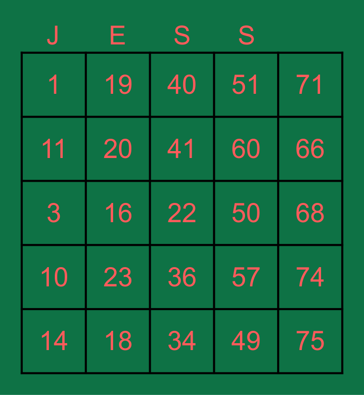 This bingo card has 25 words: 10, 18, 22, 49, 71, 1, 19, 40, 50, 74, 11, 20, 34, 57, 66, 14, 16, 41, 60, 68, 3, 23, 36, 51 and 75.
