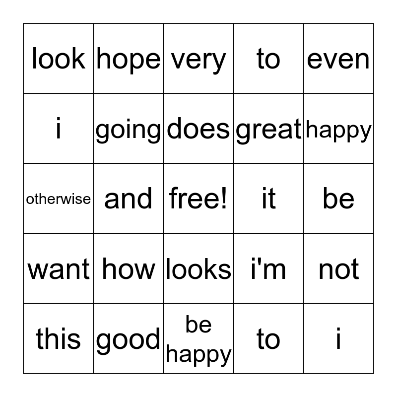 This bingo card has a free space and 24 words: how, good, does, this, even, look, i, hope, it, looks, great, otherwise, i'm, not, going, to, be, very, happy, and, i, want, to and be happy.