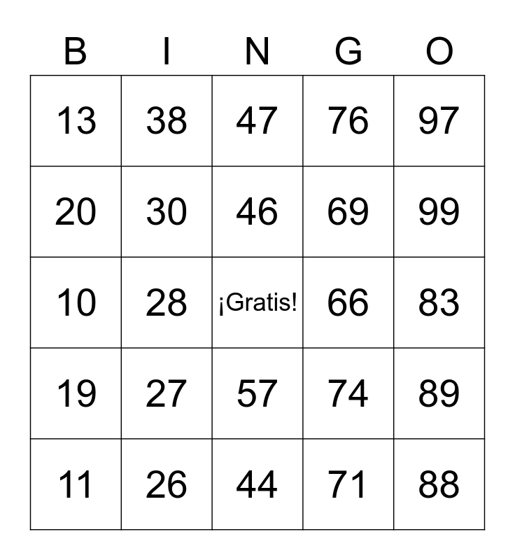 This bingo card has a free space and 100 words: 1, 21, 41, 61, 81, 2, 22, 42, 62, 82, 3, 23, 63, 83, 4, 24, 44, 64, 84, 5, 25, 45, 65, 85, 6, 26, 46, 66, 86, 7, 27, 47, 67, 87, 8, 28, 48, 68, 88, 9, 29, 49, 69, 89, 10, 30, 50, 70, 90, 11, 31, 51, 71, 91, 12, 32, 52, 72, 92, 13, 33, 53, 73, 93, 14, 34, 54, 74, 94, 15, 35, 55, 75, 95, 16, 36, 56, 76, 96, 17, 37, 57, 77, 97, 18, 38, 58, 78, 98, 19, 39, 59, 79, 99, 20, 40, 60, 80, 100 and 43.