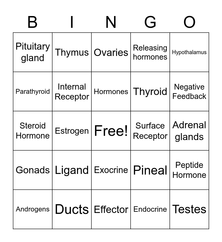 Endocrine System Bingo | BINGO | Endocrine System | Endocrine System | AP MOD. II-Exam 2