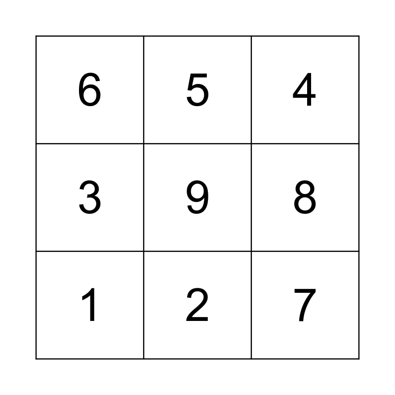 This bingo card has 9 words: 1, 4, 5, 3, 6, 8, 9, 7 and 2.