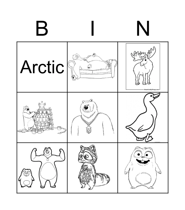 This bingo card has 10 images, a free space and 4 words: Hibernate, Netflix, Arctic and Snow.