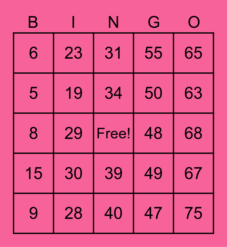 This bingo card has a free space and 75 words: 1, 16, 31, 46, 61, 2, 17, 32, 47, 62, 3, 18, 48, 63, 4, 19, 33, 49, 64, 5, 20, 34, 50, 65, 6, 21, 35, 51, 66, 7, 22, 36, 52, 67, 8, 23, 37, 53, 68, 9, 24, 38, 54, 69, 10, 25, 39, 55, 70, 11, 26, 40, 56, 71, 12, 27, 41, 57, 72, 13, 28, 42, 58, 73, 14, 29, 43, 59, 74, 15, 30, 44, 60, 75 and 45.