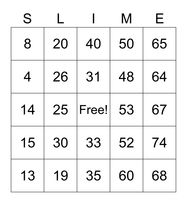 This bingo card has a free space and 75 words: 1, 16, 31, 46, 61, 2, 17, 32, 47, 62, 3, 18, 33, 48, 63, 4, 19, 34, 49, 64, 5, 20, 35, 50, 65, 6, 21, 36, 51, 66, 7, 22, 37, 52, 67, 8, 23, 38, 53, 68, 9, 24, 39, 54, 69, 10, 25, 40, 55, 70, 11, 26, 41, 56, 71, 12, 27, 42, 57, 72, 13, 28, 43, 58, 73, 14, 29, 44, 59, 74, 15, 30, 45, 60 and 75.