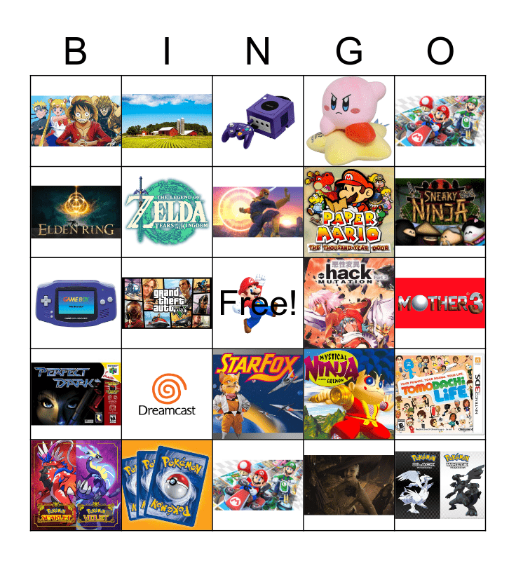 This bingo card has 24 images and a free space.